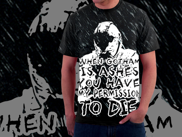 My entry for a T-Shirt design contest for The Dark Knight Rises. It features a stylized image of Bane with his iconic quote from the trailer, "When Gotham is ashes, you have my permission to DIE!"